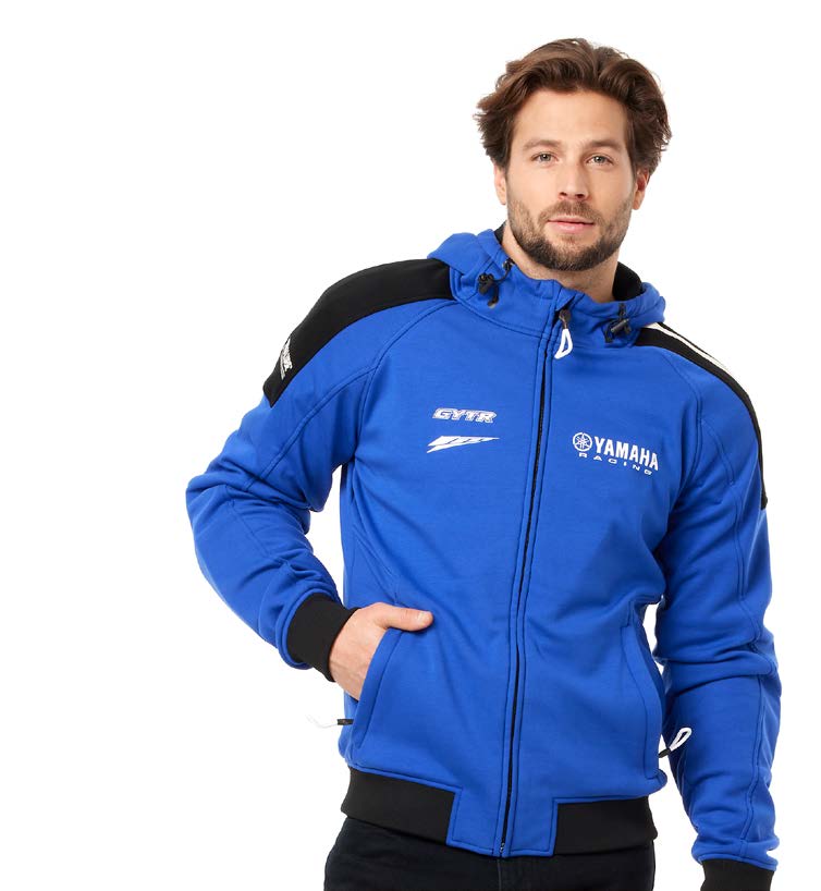 Comfortable Paddock Blue riding hoodie comes fully equipped with CE shoulder and elbow protectors. Easy to maintain cotton and polyester mix with printed logos.