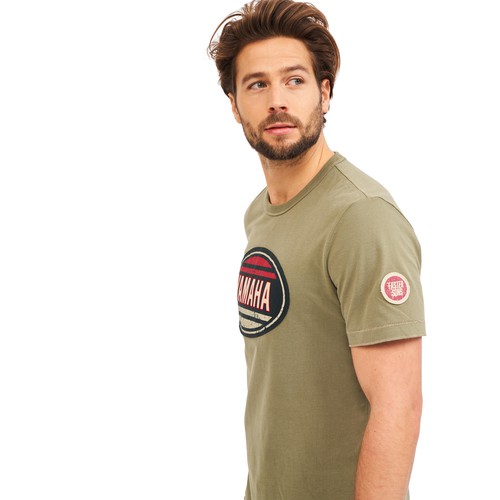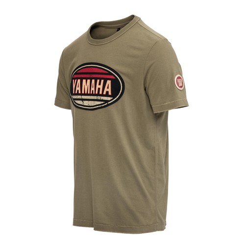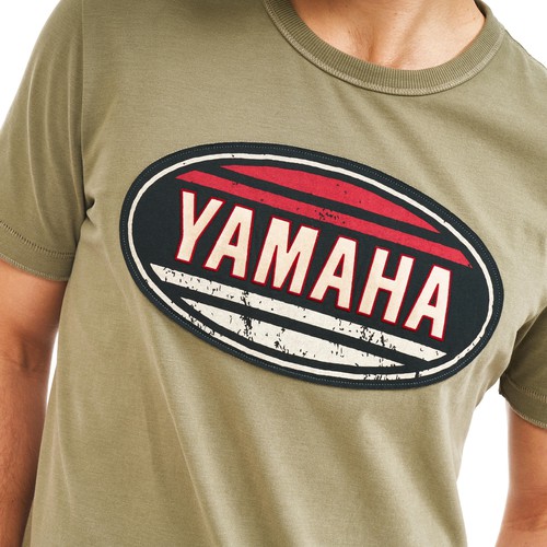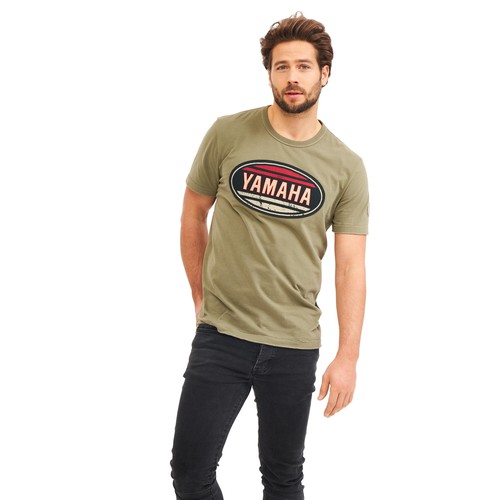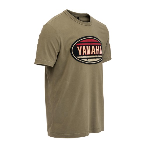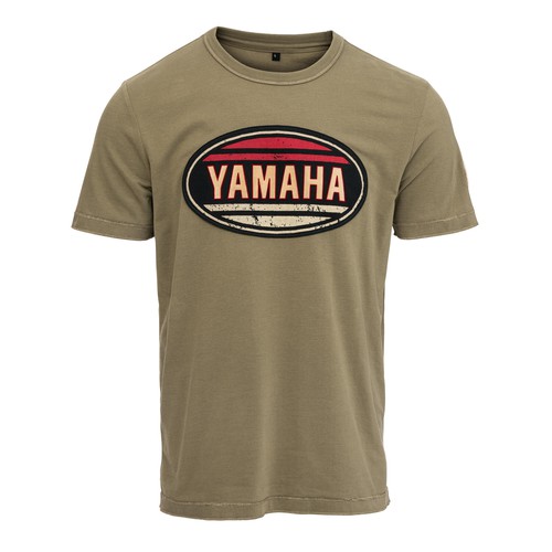 Ova Yamahina majica starinskog je izgleda i ima veliki Yamahin starinski logotip na prsima, povezujući vas s Yamahinom markom. Ova majica kratkih rukava dostupna je u zelenim i krem bojama.