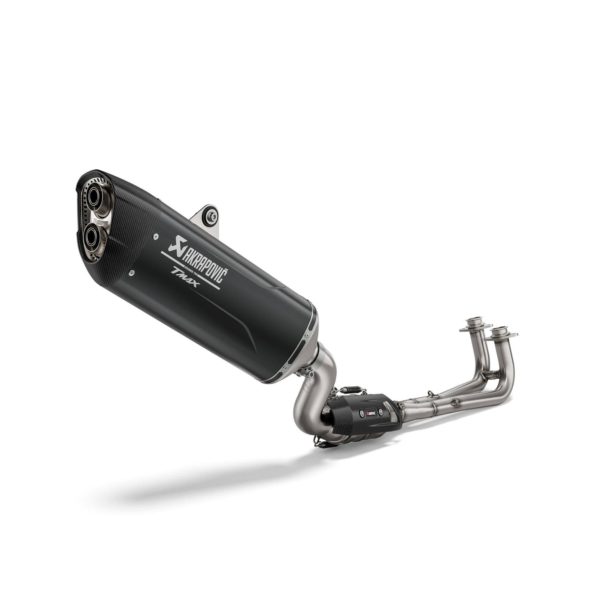 Z Akrapovičevim popolnim izpušnim sistemom v črni barvi zagotovite svojemu modelu Yamaha TMAX izboljšano zmogljivost, zvok in slog. Cevi iz nerjavečega jekla se povežejo s črnim titanovim dušilcem zvoka z lasersko vgraviranim logotipom TMAX za eleganten dodatek.