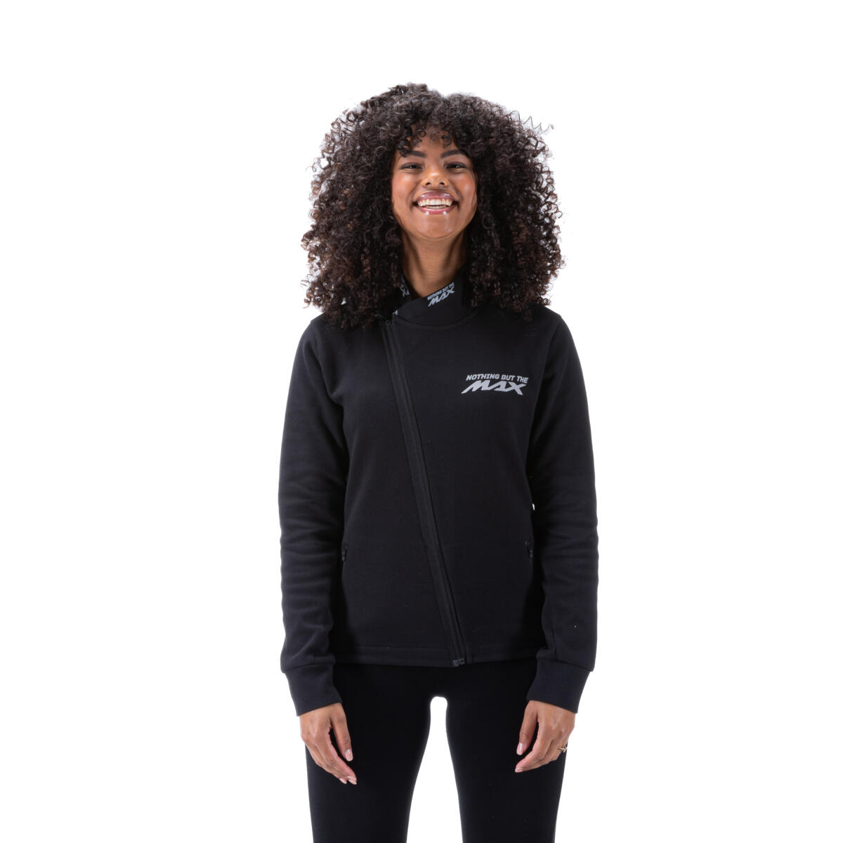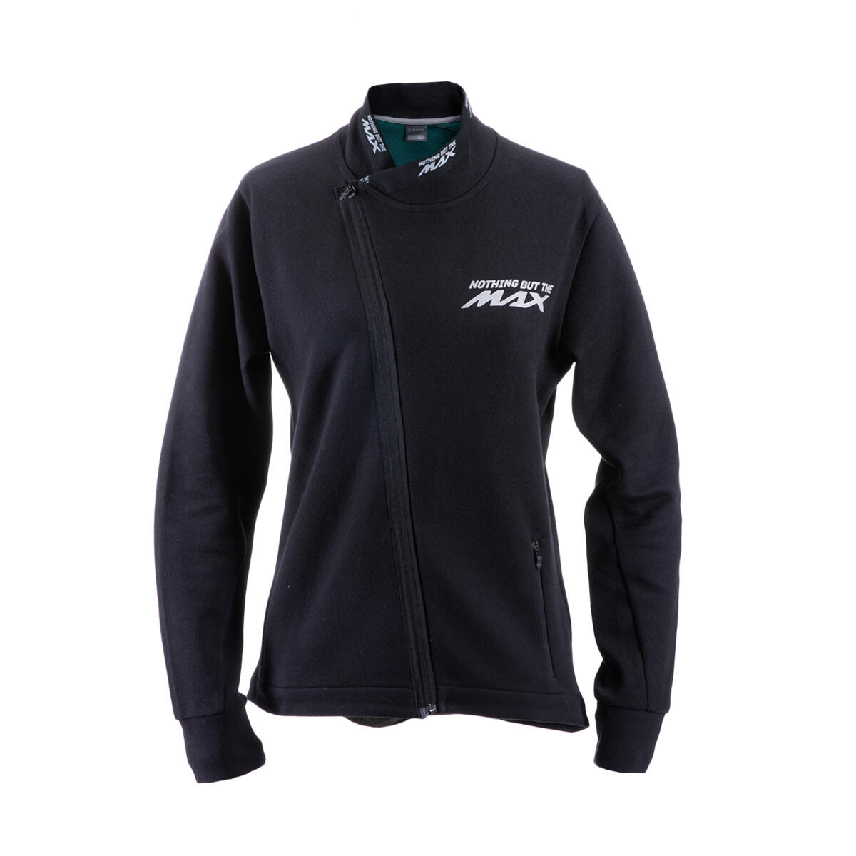 High end women’s Scooter sweater in sustainable fabric, feeling special and feminine with the A-symmetric zipper.